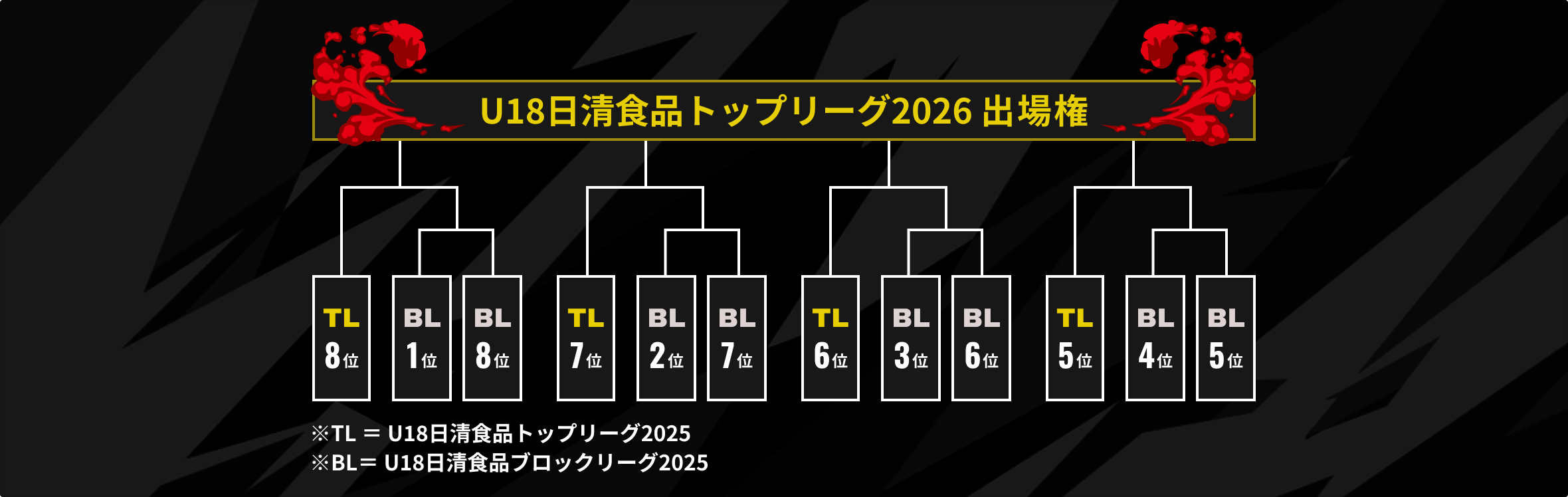 ※1:「U18日清食品トップリーグ」の1位から4位までのチームには、翌年度の「U18日清食品トップリーグ」への出場権が与えられます。