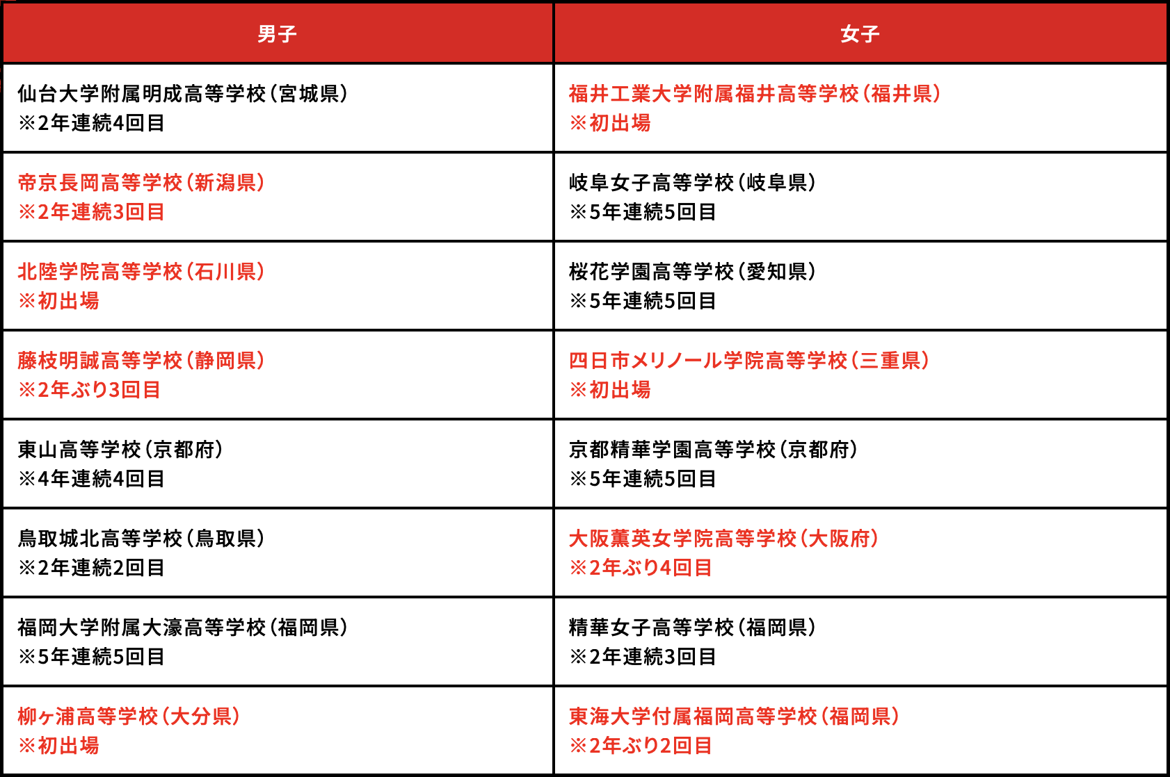 ※赤字表記が「U18日清食品トップリーグ2026入替戦」にて出場権を獲得したチーム