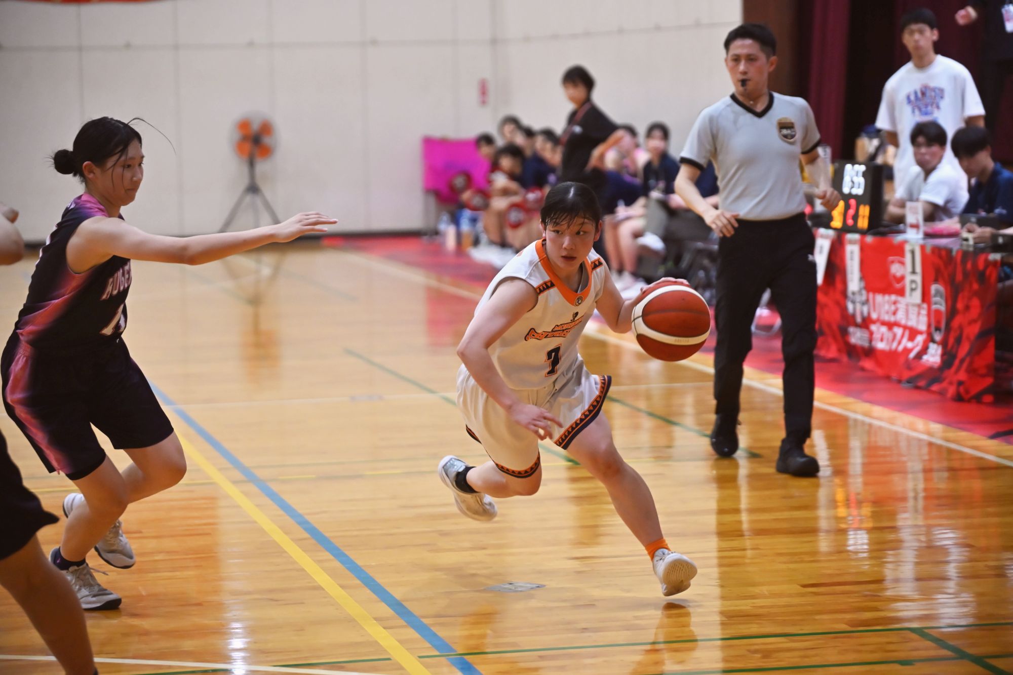 そうした若いチームで下級生をリードするのが、昨年の優勝を経験している3年生、ゲームキャプテンの平野由奈選手です。昨年はポイントガードとしてゲームメークを担当していましたが、今年は3ポイントシュートや1対1で得点を稼ぐスコアラーへと役割が変わりました。156cmと小柄ではありますが、ドリブルワークからの得点力には目を見張るものがあります。しかし本人は、黒星先行の状況に反省しきりでした。