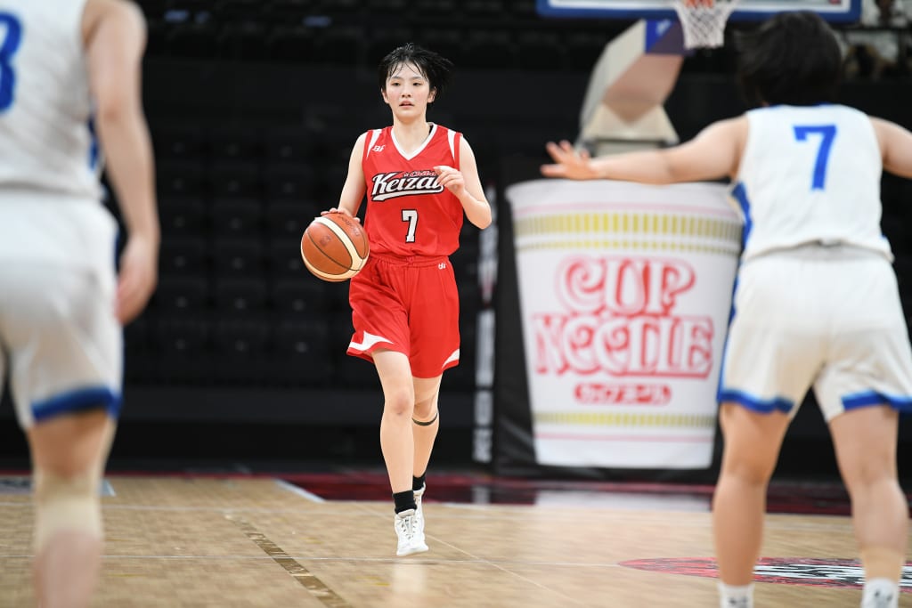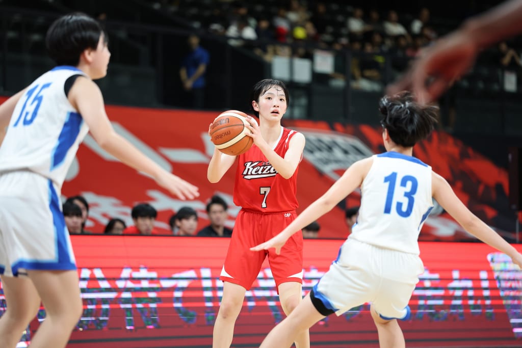 14点差で迎えた後半も、トランジションからのレイアップ、素早いパス回しからの得点など粘りを見せた千葉経済大学附属でしたが、インサイドの強みを発揮する精華女子にじりじりとリードを広げられ、80-105で敗北を喫しました。