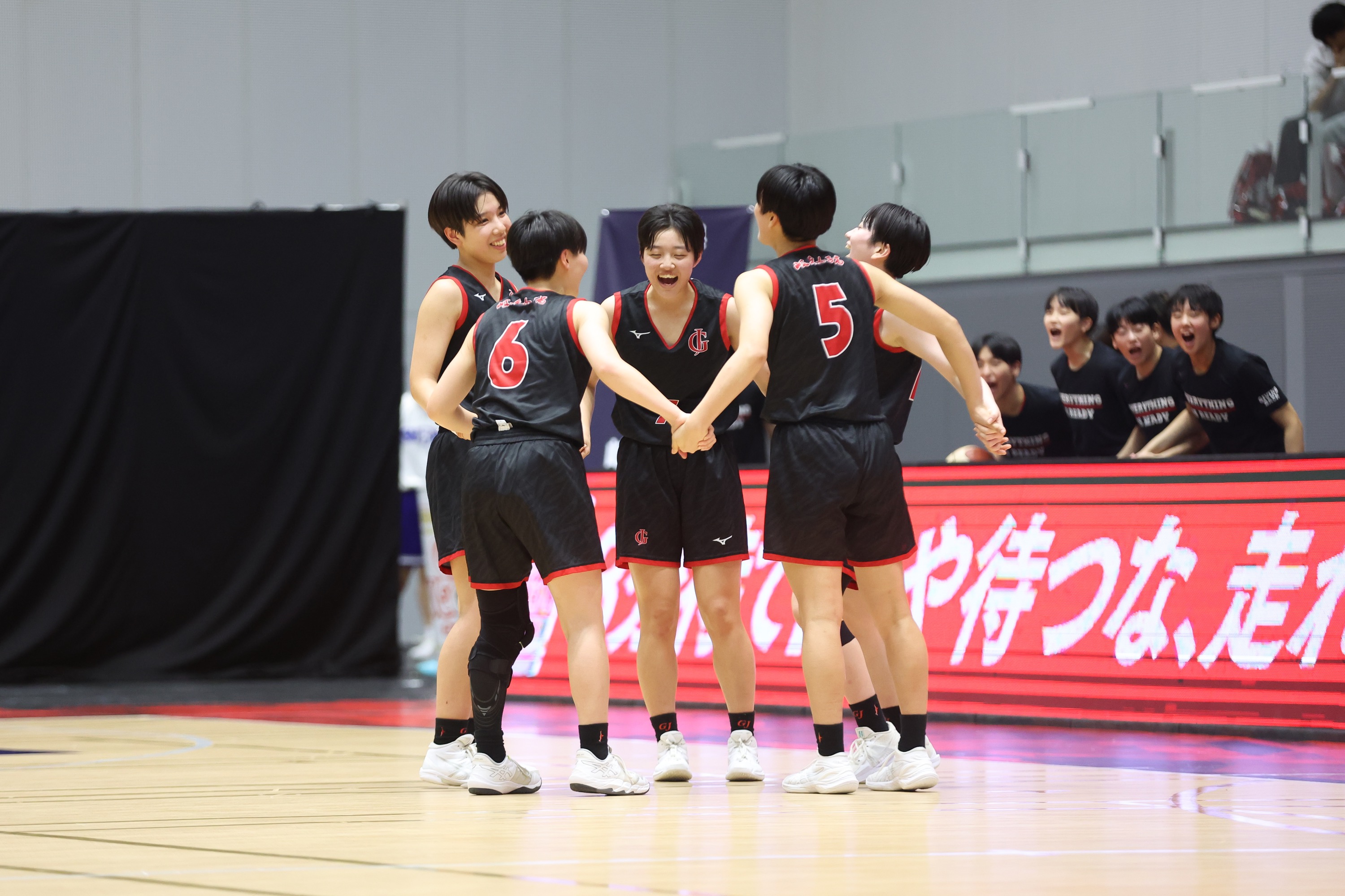 それでも、この勝負どころで#4三宅香菜選手(3年/172cm)が3ポイントシュートを決め、さらには坂口選手のバスケットカウントも続いて再びリードを2桁に。その後もオフェンスリバウンドに何度も飛び込み、セカンドチャンスから#5杉浦結菜選手(3年/172cm)らが得点するなど優位に立ちました。48-31で入った最終クォーターも堅いディフェンスを継続し、最後は控えの下級生をコートに送り出す余裕も見せて60-41で勝利。相手に夏のリベンジを許さず、岐阜女子が今大会5勝目を挙げました。