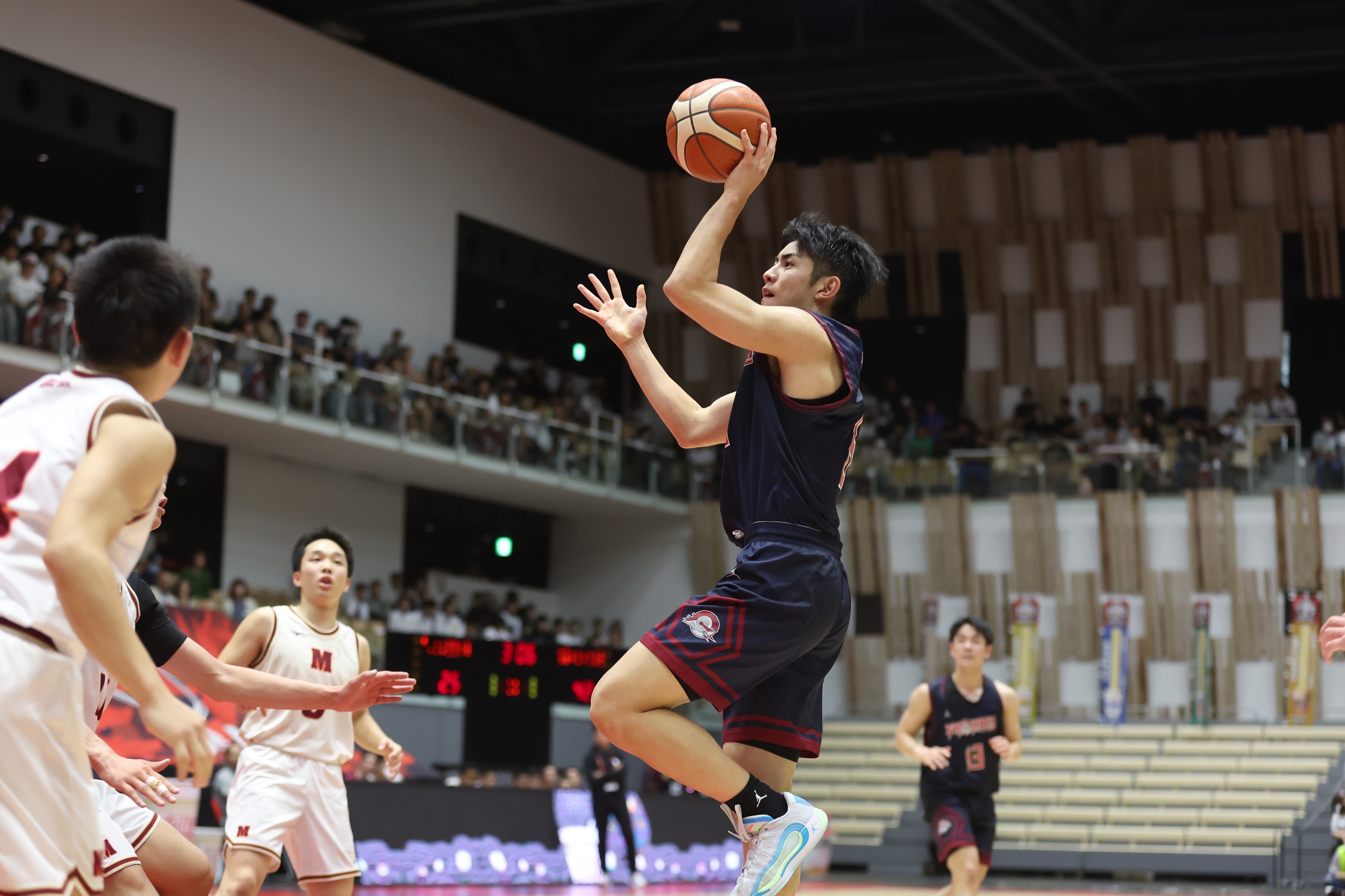 第4クォーター、仙台大学附属明成の#10荻田航羽選手(3年/190cm)に2本の3ポイントシュートを決められ追い上げられますが、福岡大学附属大濠は吉岡選手がタフショットを沈め、僅差で逆転を許しません。プレッシャーのかかる場面でも吉岡選手はフリースローを確実に決め、ディフェンスでも存在感を発揮。その後、本田選手が勝負を決定付けるドライブをねじ込み、福岡大学附属大濠が76-69で勝利を収めました。