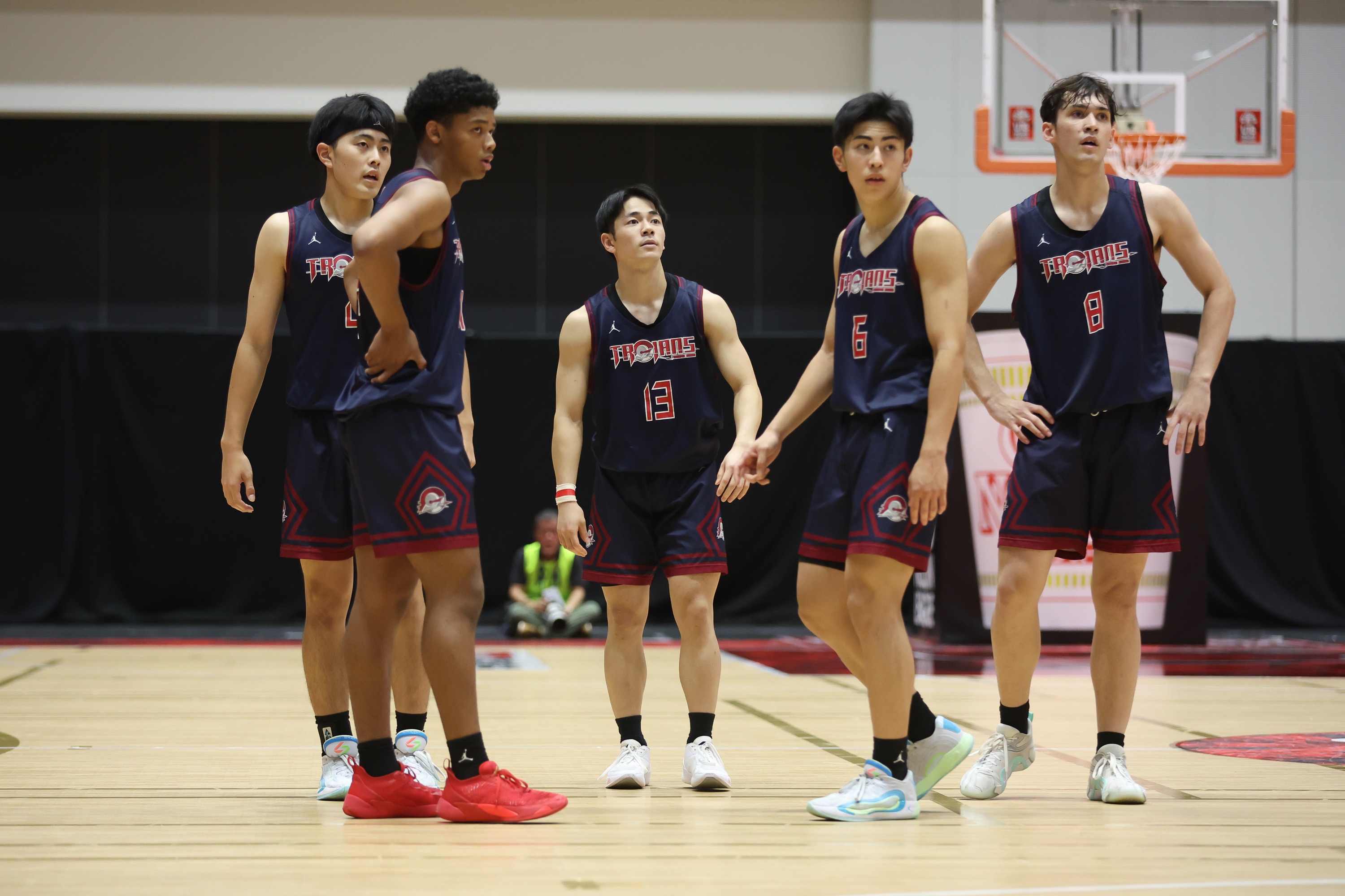 この試合、28得点の本田選手に次ぐ18得点を挙げ、相手の追い上げムードを断ち切って勝利に大きく貢献したのが吉岡選手。彼はこれまで2年間、主にベンチから出場し、ディフェンスで相手にプレッシャーをかける役割を担ってきました。しかし、6月の九州大会で中村文哉選手(2年/190cm)が負傷離脱したことをきっかけにスタメンに抜擢。「中村選手ほどシュートは入らないですし、本田選手のような身体能力もありません。でも、トランジションで走り切ることや、状況に応じてプレーすることが自分の強みかなと思います」と語るように、常に頭を使いながら自らの役割を模索してきたそうです。