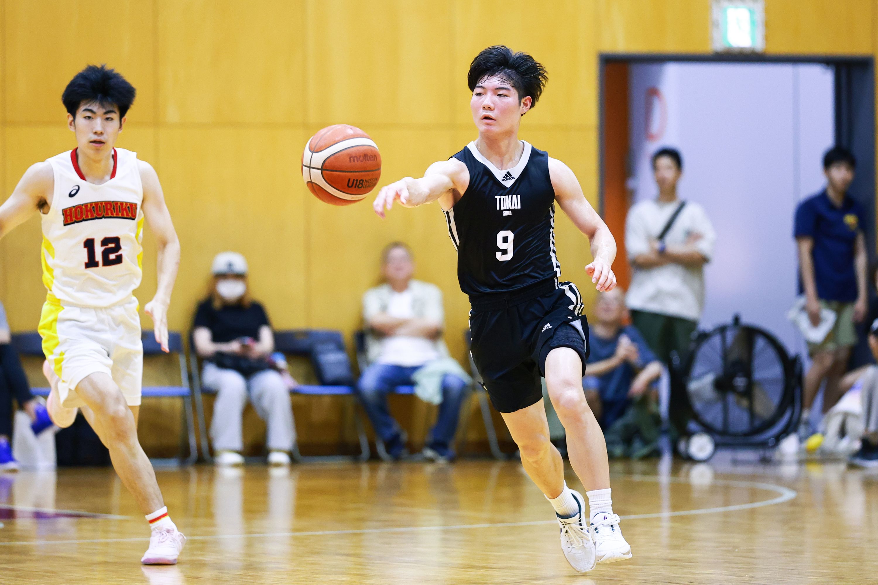 9月14日、リーグ初戦は北陸(福井県)との対戦でした。インターハイ4強進出の強豪校に対して、東海大学付属諏訪はしっかりと対策を練った上で挑みます。持丸選手は相手のポイントガードを徹底マークし、相手に自由を与えません。「自分は一番前にいるので、みんなから見られているディフェンスをしっかりやればチーム全体のディフェンスも良くなる」という信念の下、高い強度での守備を徹底します。