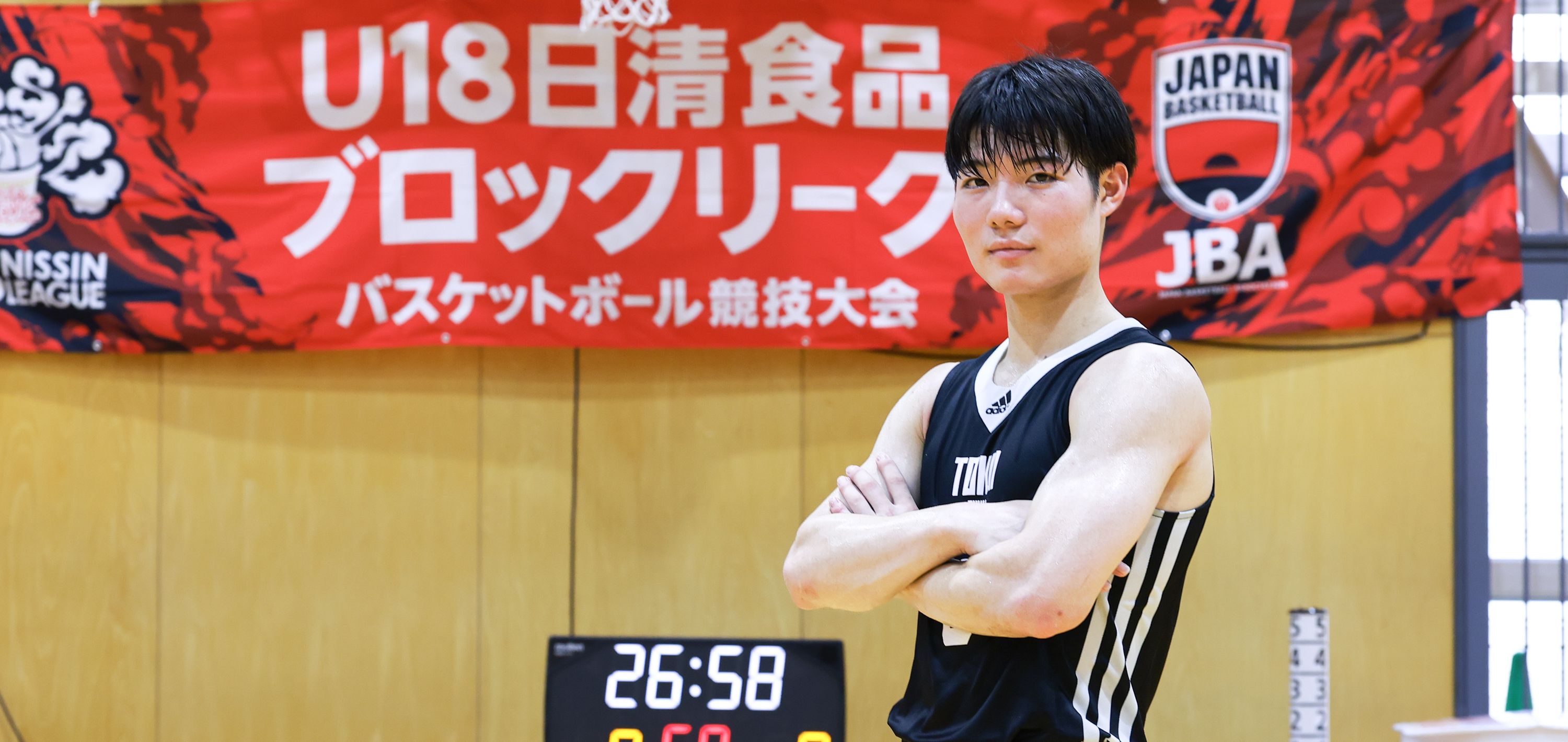 「U18日清食品ブロックリーグ グループC」に出場している東海大学付属諏訪(長野県)を先頭に立って引っ張っているのは、キャプテンでポイントガードの持丸昭人選手です。中学時代はライジングゼファー福岡 U15の一員としてJr.ウインターカップを制覇。「よりディフェンスを磨きたい」という思いで、東海大学付属諏訪を進学先に選びました。