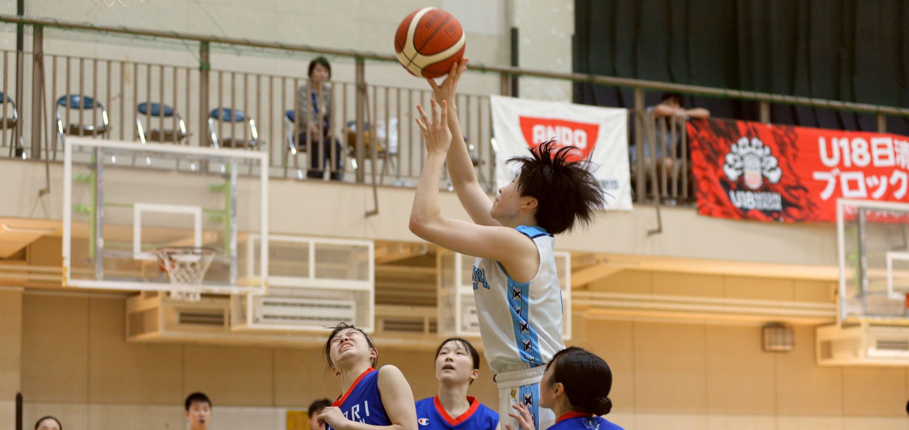 世代別の日本代表として世界大会にも出場した経験を持つ岩坂選手は、1年時からチームの大黒柱として期待されてきました。勝負を決定付けたワンハンドの3ポイントシュートも、たゆまぬ努力の末に身に着けたものです。「もともとは両手で打っていましたが、留学生のいるチームとの対戦で外のシュートを打てないと攻め手が少なくなるので、昨年のウインターカップ後からワンハンドで打つ練習を始めました。このリーグでは今のところ良いタイミングで打ち切れています」