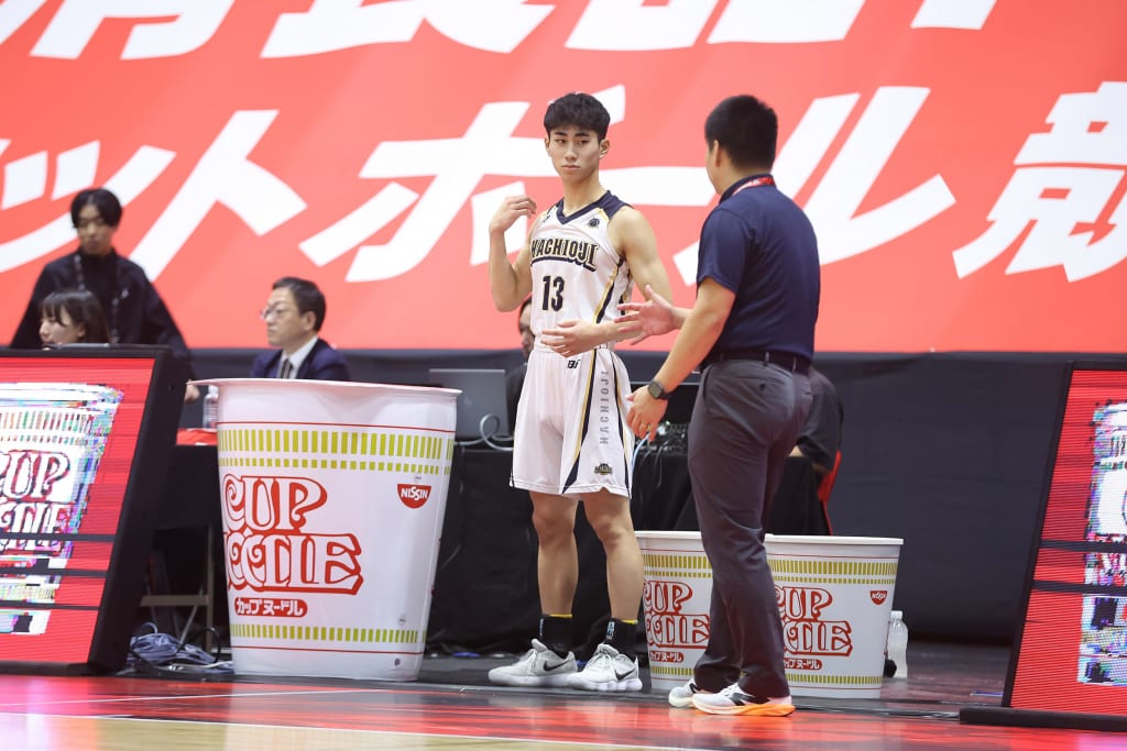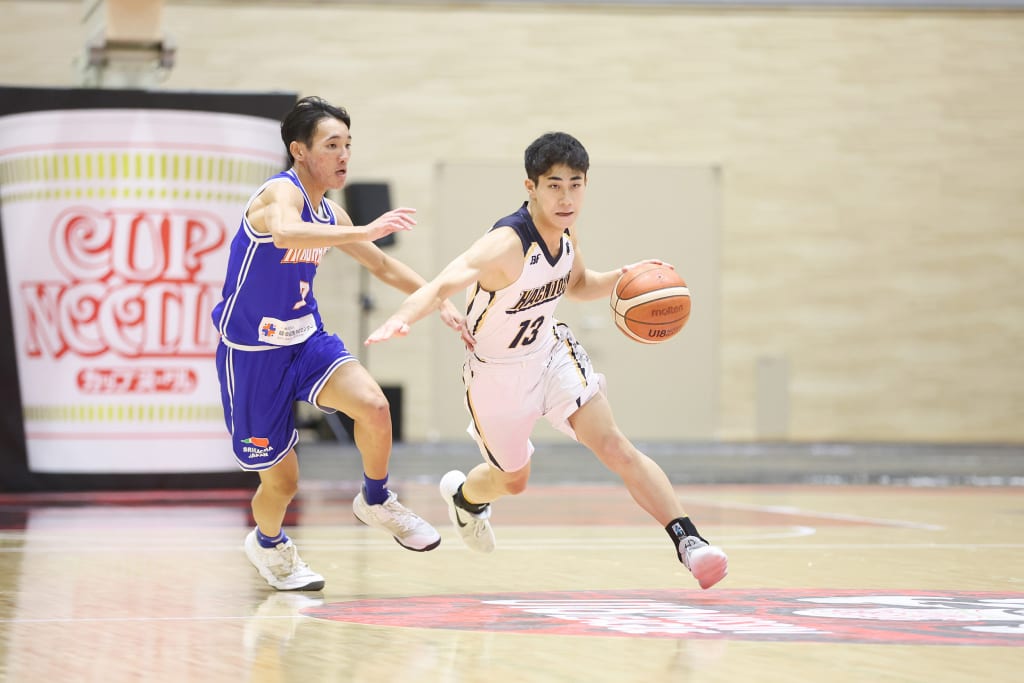 一方、オフェンスでは花島選手が25得点、ニャン セハ セダト選手が17得点、田原選手が12得点、照井選手が11得点と多くの選手が力を発揮しました。その彼らにアシストし、自らも得点を奪って8得点、6リバウンド、9アシストというスタッツを残したのが司令塔でキャプテンの#13 畠山颯大選手(3年/174cm)です。
