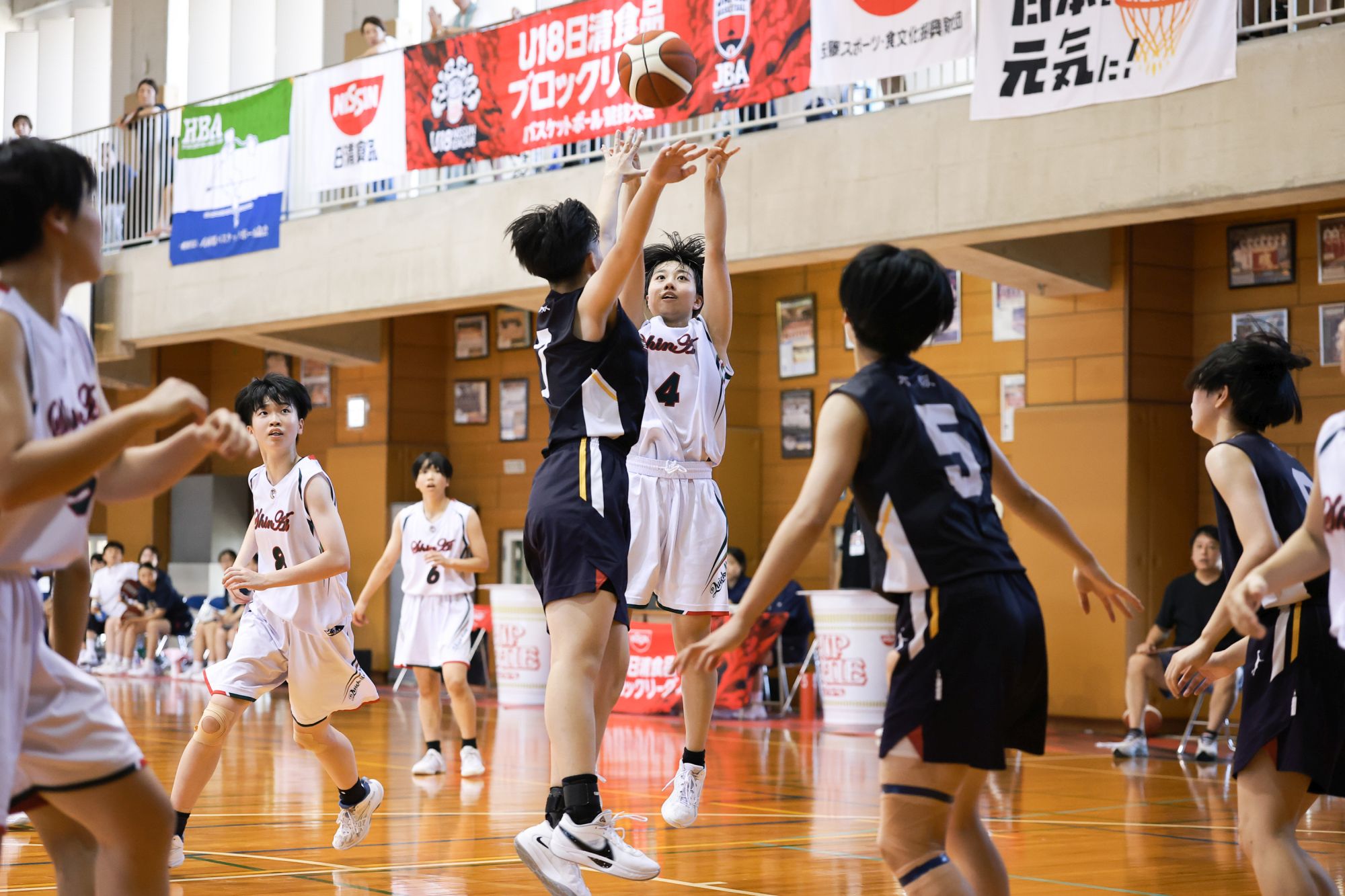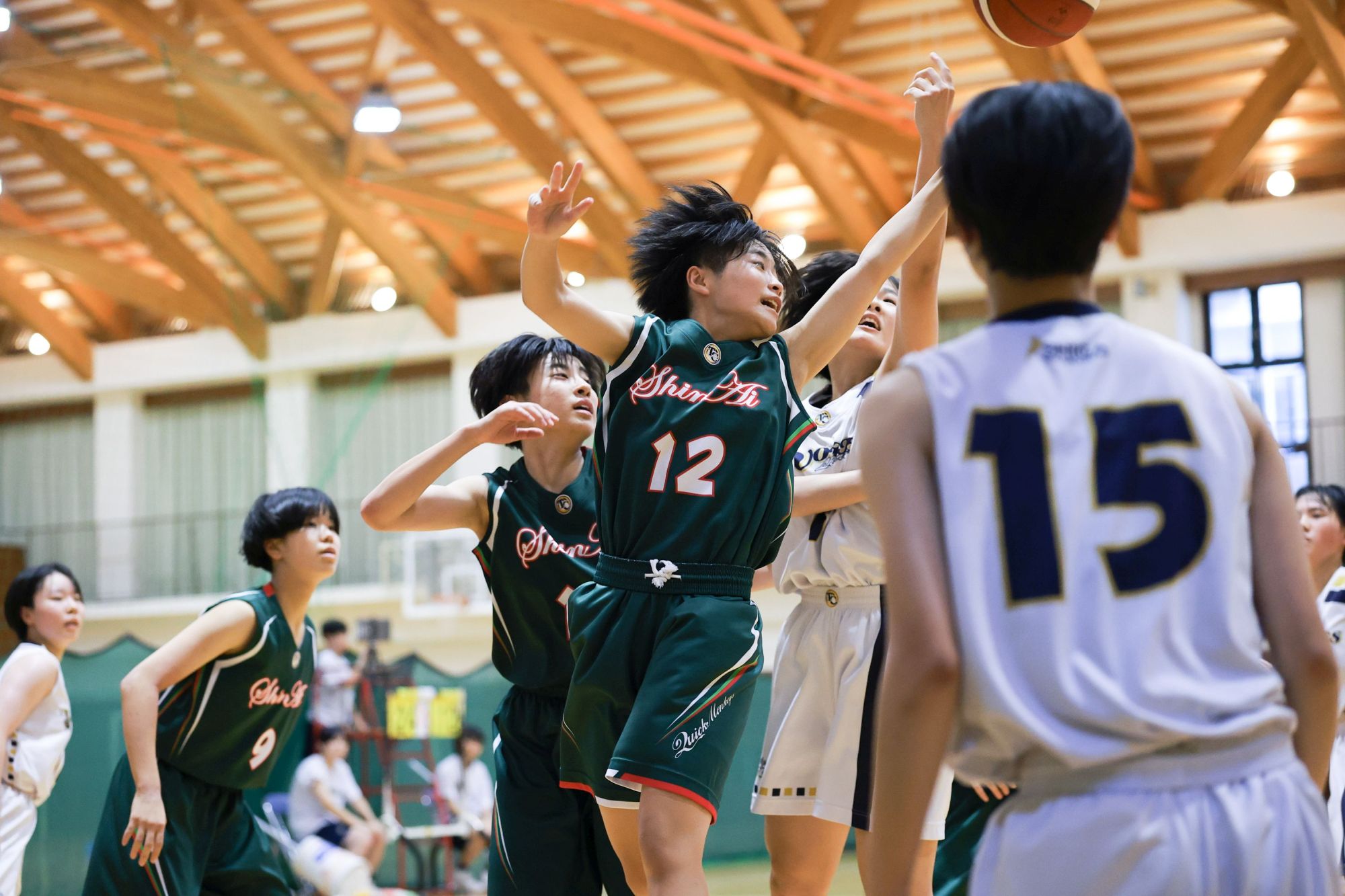 「U18日清食品ブロックリーグ2025 グループE」の開幕戦では近江兄弟社(滋賀県)と対戦。第1クォーターは14-26と圧倒されますが、落ち着きを取り戻した第2クォーターからは、腰を落とした粘り強いディフェンスからの高速トランジションという和歌山信愛らしいバスケを展開します。こうして少しずつ点差を詰めて迎えたクラッチタイム、最後はキャプテンの神崎美玖選手が冷静に逆転のジャンプシュートを沈め、62-61の逆転勝利を飾りました。