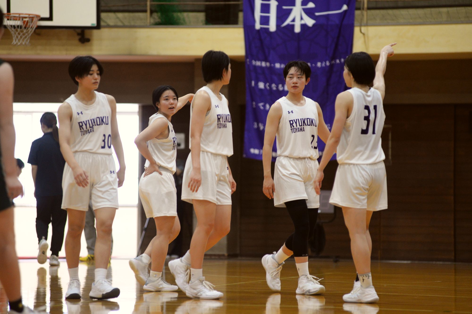 龍谷富山が目指しているのは、スピーディな展開から多くの得点をモノにするハイペースなバスケです。20日の高崎商業(群馬県)戦を90-84という理想的なスコアで制した翌日には、今夏のインターハイでベスト8に入った強豪、昌平(埼玉県)と対戦。サイズで勝る相手に対し、ガードの赤坂菜緒選手、ウイングの新崎馨選手、竹部美咲選手、伊藤想乃香選手らの高さを生かしながら磨いてきた早い展開に持ち込もうとしましたが、試合巧者の昌平にタフに守られ、53-82で敗れました。