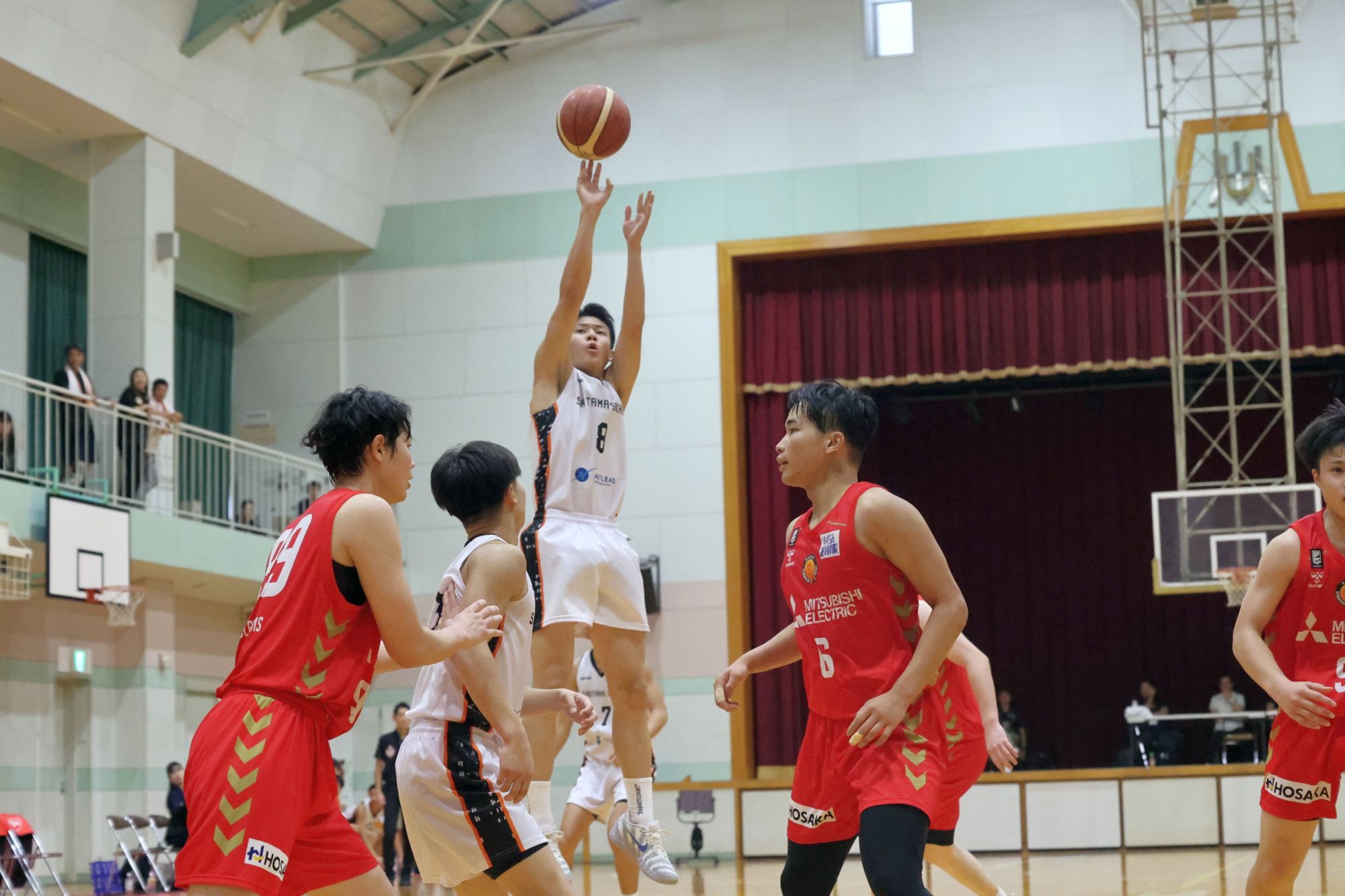 「U18日清食品ブロックリーグ2025 グループB」の初戦で、埼玉栄は千葉ジェッツ U18(千葉県)とのシーソーゲームに競り勝ちました。翌日の名古屋ダイヤモンドドルフィンズ U18(愛知県)戦では第4クォーターに埼玉栄の流れが来ましたが、細かいミスやフリースローの失敗が響いて延長に突入。最後は相手の3ポイントシュート攻勢の前に屈しました。2日続けての接戦で黙々とシュートを打ち続けていたのが白濱選手です。