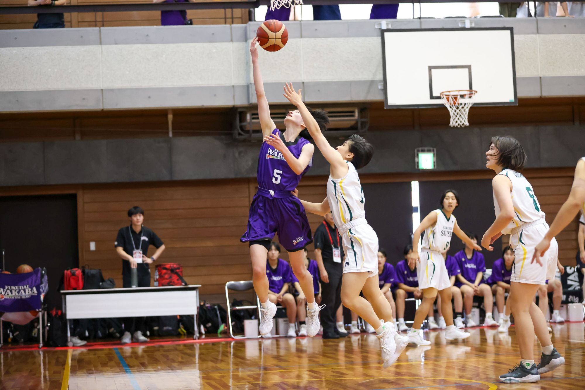 最前線からプレッシャーを仕掛けるガードの高木楓夏選手が引っ張る組織ディフェンスから、177cmの鈴木瑚香南選手と173cmの猿木心和選手が高さを生かしつつも互いにスペースを活用する連携を見せ、2人が広がって生み出すスペースに太田妃優選手や小坂瑞希選手が飛び込む多彩なオフェンスが、爆発的な得点力を生み出しています。