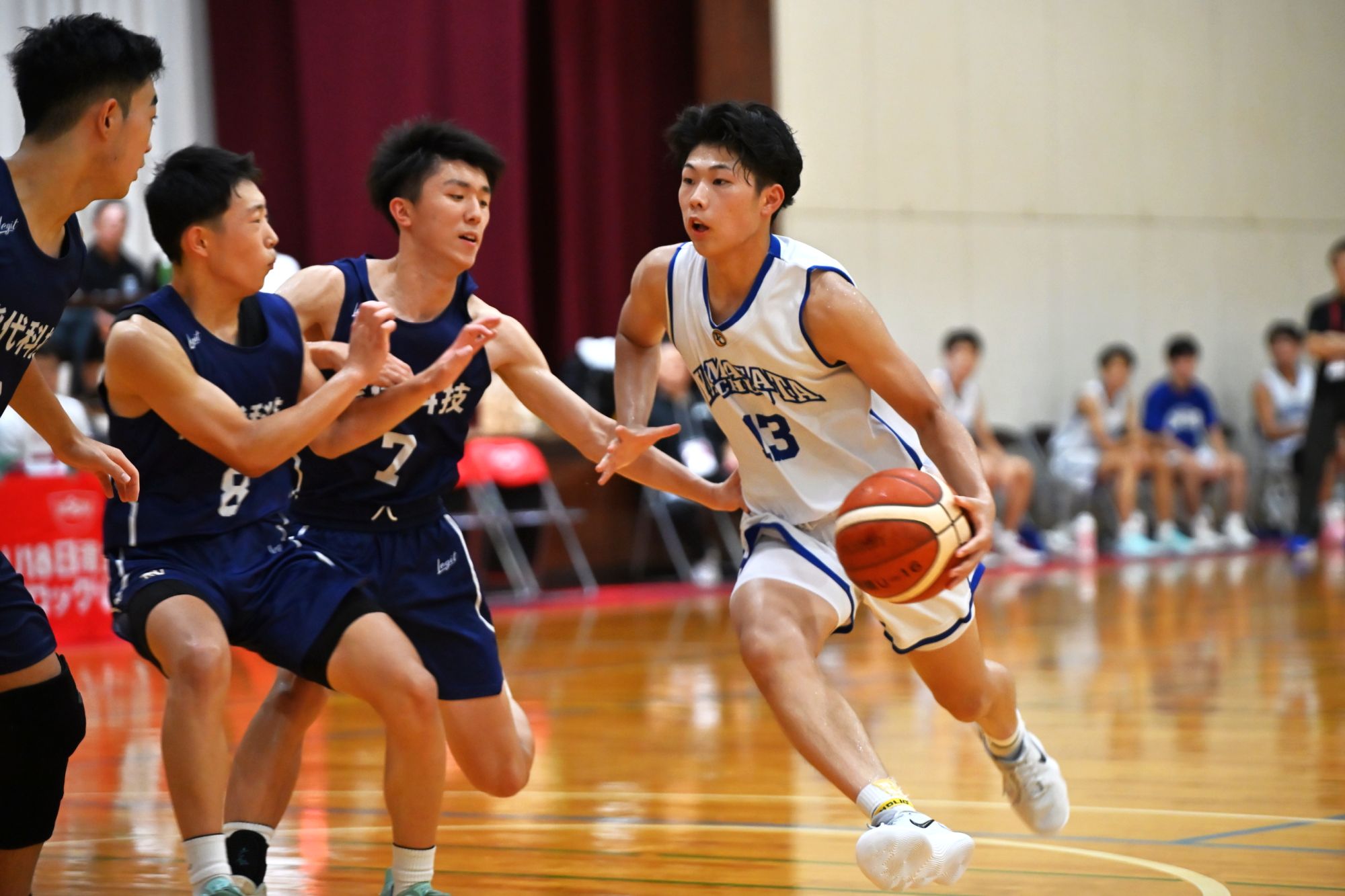 初出場を喜んでいるのは選手たちも同様です。190cmのサイズを持ち、エースとして3ポイントシュートやドライブインが得意の松澤登馬選手は「1年生の頃からこの大会に出るのが夢でした。今年はインターハイ出場を果たせなかったので、このU18日清食品ブロックリーグを全国大会のつもりで臨んでいますし、この大会にかける思いは強いです」と話します。