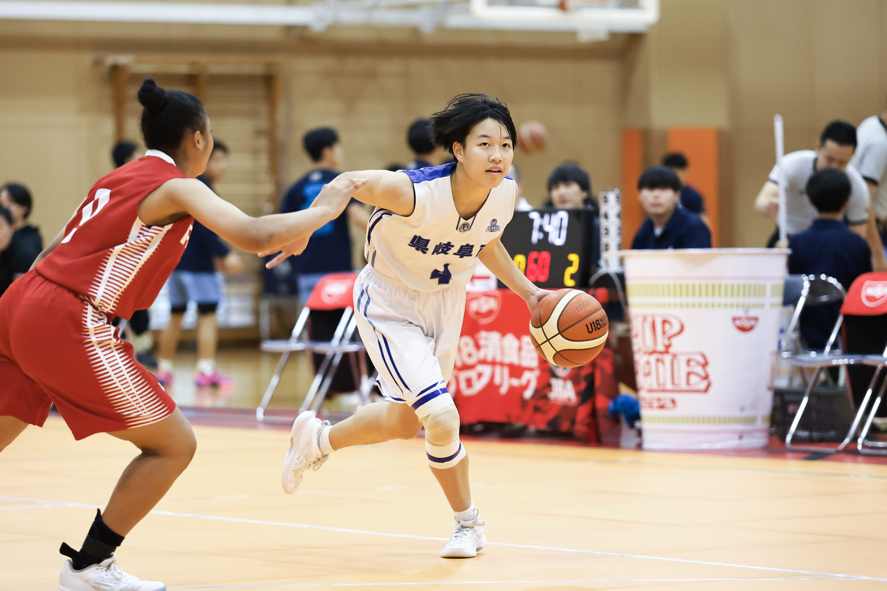 『県岐商』こと県立岐阜商業は、「U18日清食品ブロックリーグ2025」に大会初年度から4年連続の出場となります。10月12日に行われた安城学園(愛知県)戦では83-73で競り勝ち、大会2勝目を挙げました。