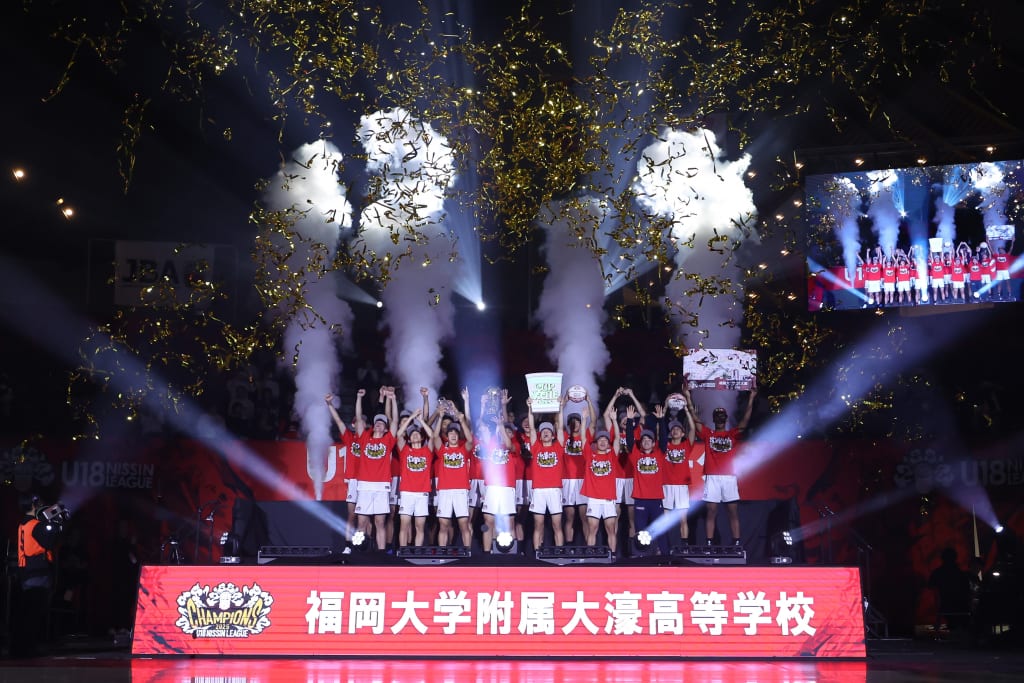福岡大学附属大濠は攻防の高いインテンシティを後半も継続し、第3クォーターで65-37、第4クォーターも最後まで攻め気を姿勢を貫き、最終スコアは97−48。得点は今大会最多、失点は2番目に少ない渾身の試合内容で、「U18日清食品トップリーグ」の連覇を成し遂げました。