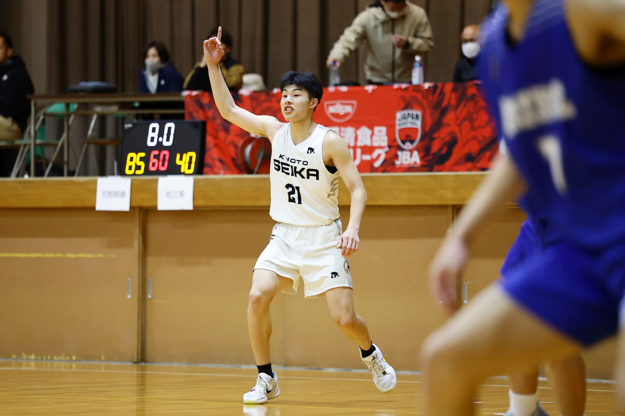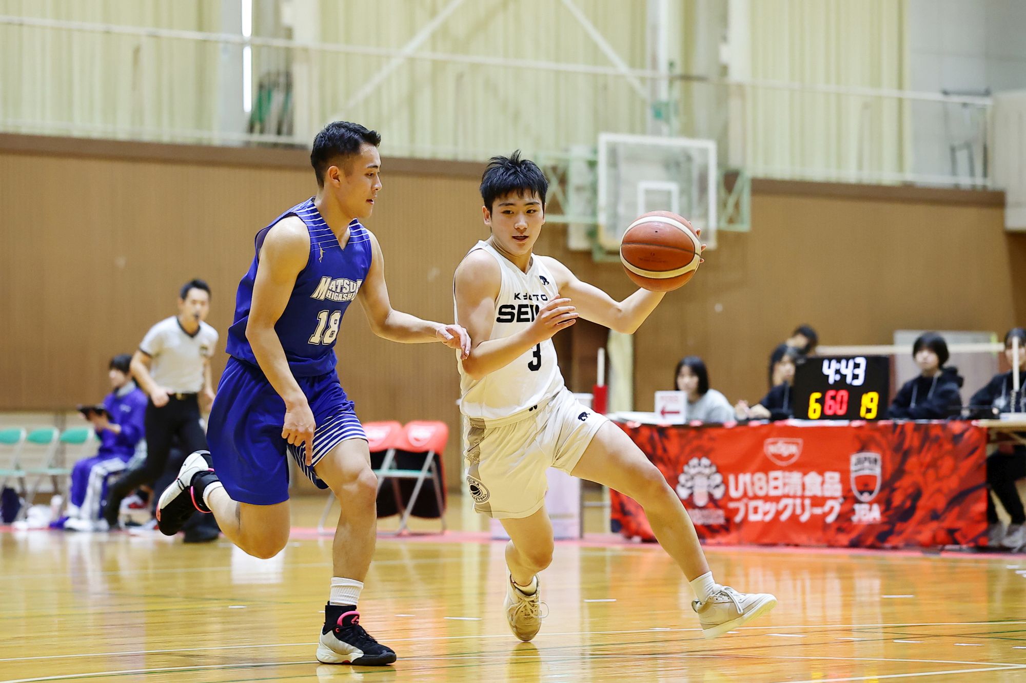 第1クォーターで31-11の大量リードを得ると、前半を終えて62-29と松江東を圧倒。第4クォーターはベンチメンバーに試合経験を積ませつつ、最終的に99-59で勝利しました。これで無傷の5連勝、得失点差は+177まで伸ばしました。