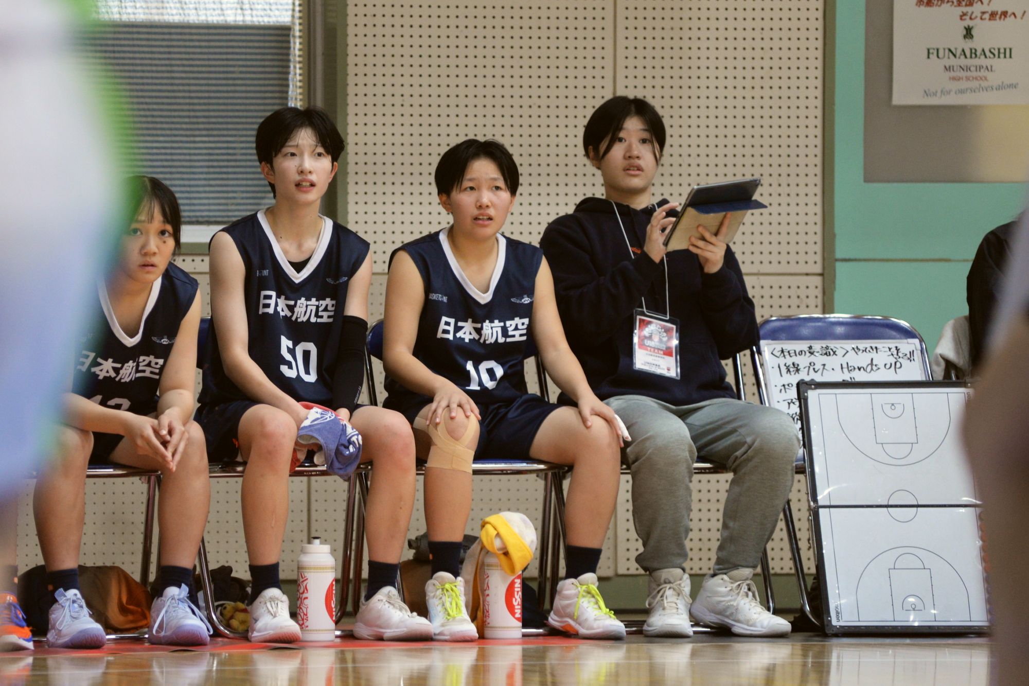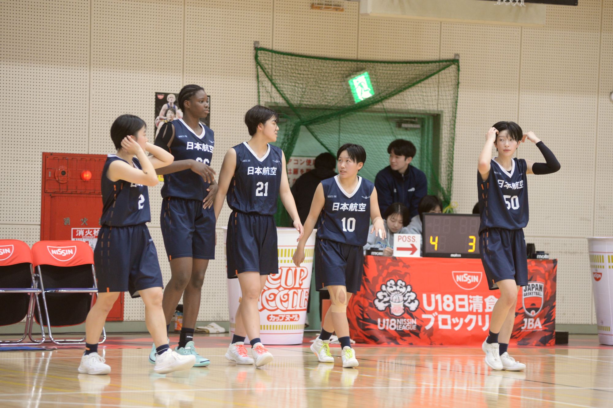 日本航空(山梨県)は「U18日清食品ブロックリーグ グループB」を4勝3敗で終えました。最終戦となった11月9日の船橋市立船橋(千葉県)戦は、第1クォーターに2桁リードを奪うも、第2クォーターには得点が止まって追い上げられる展開に。それでも第3クォーター、185cmのアジェウォレ メルシー選手の高さを生かしたプレーで得点が動きだすと、那須寧選手や長田一花選手の3ポイントシュート、川上華凜選手の速攻など多彩なオフェンスで船橋市立船橋を突き放します。