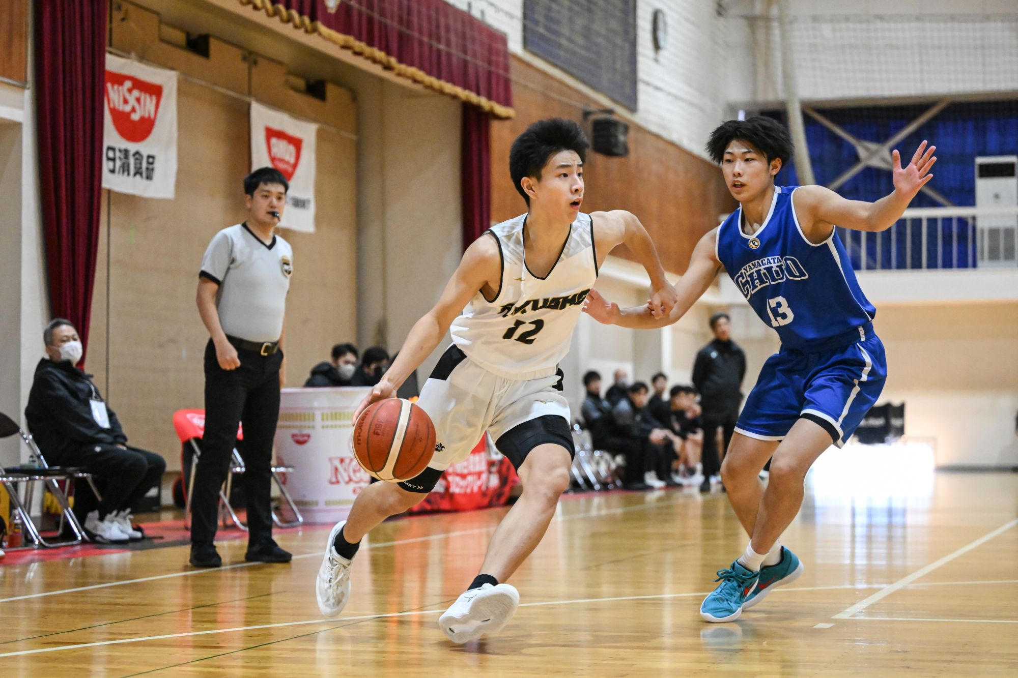 県立山形中央戦のスタートは、3年生中心のチームでもスターティングメンバーを務めていた2年の黒澤選手と狗飼雅博選手以外は、いずれも試合経験の少ない1年生です。チーム最長身である190cmの狗飼選手のパワフルなプレー、1年生の長尾奏汰選手の緩急を生かしたドライブや、3年生の菅野亮選手、斎藤瑠佑選手、矢島相選手の鍛えられたディフェンスなど好プレーはありましたが、63-88で敗れました。