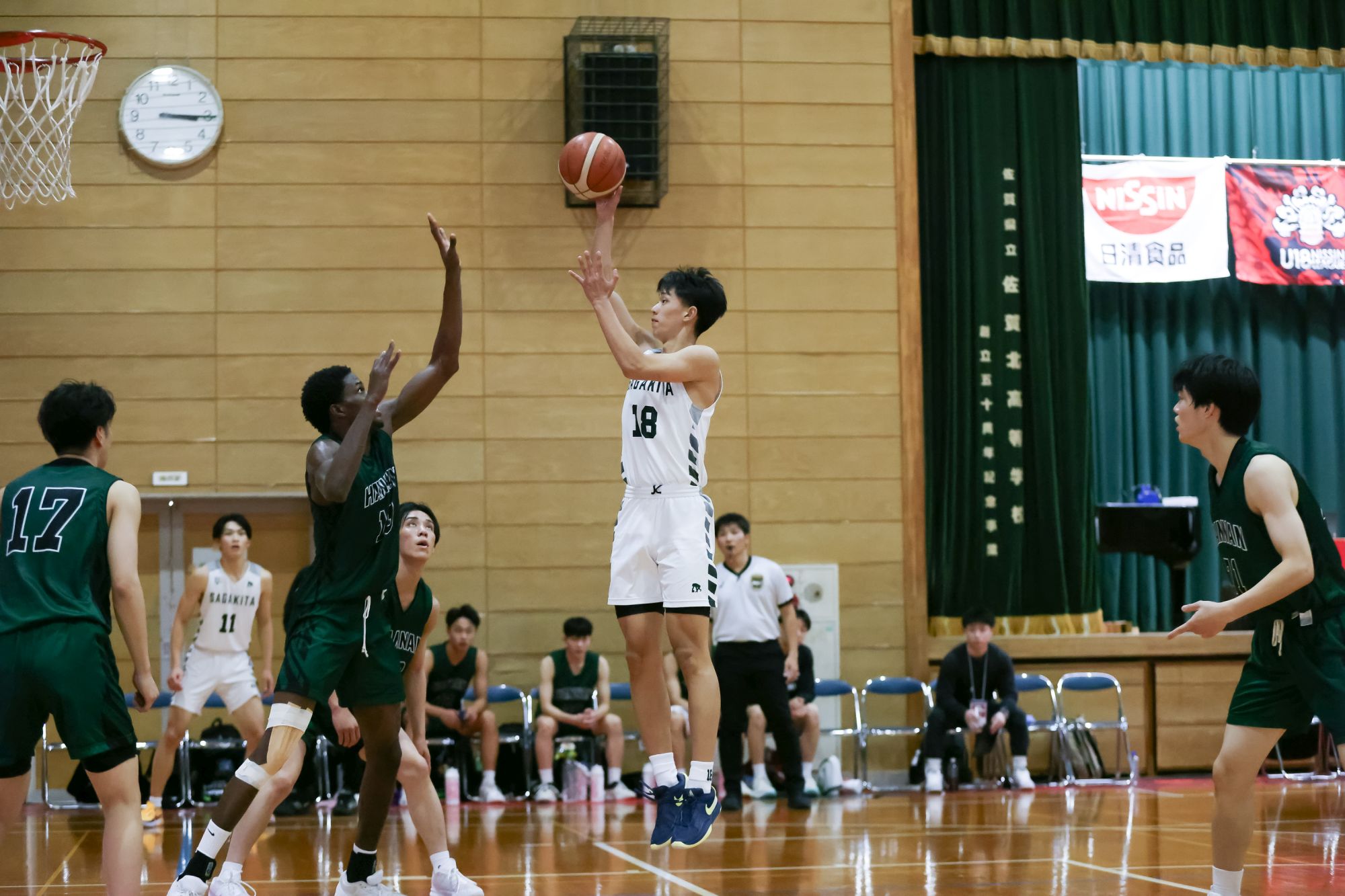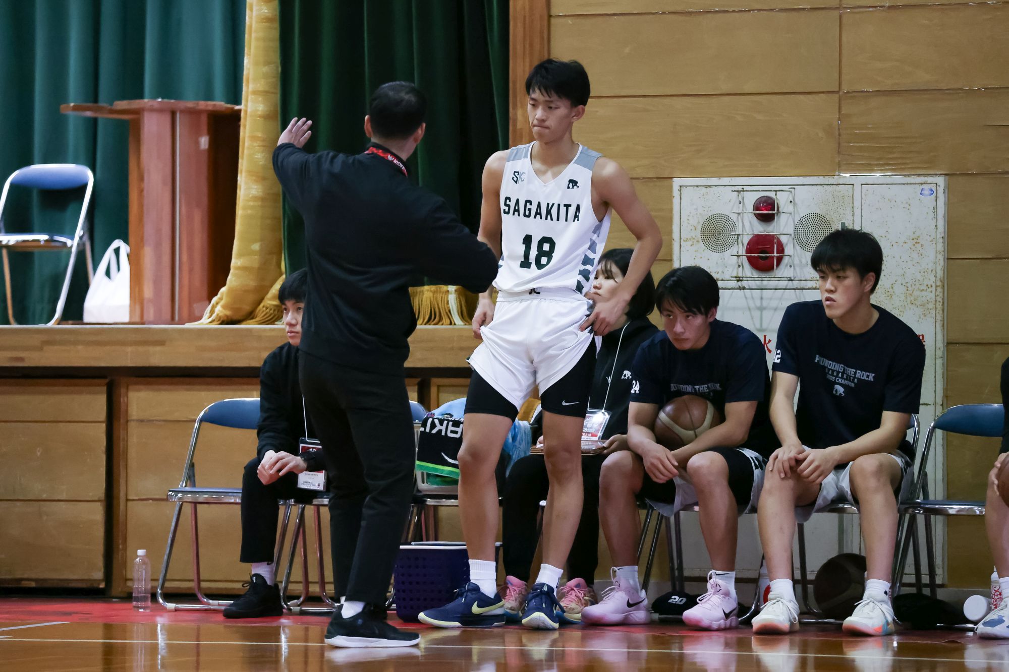 最初の2試合はケガ人が多く連敗となりましたが、その後は3連勝と持ち直します。そしてラスト2試合は阪南大学(大阪府)と瓊浦(長崎県)、いずれも留学生プレーヤーを擁するチームとの試合となりました。「ウチには留学生のいるチームとの対戦がなかなかないので、この機会に思い切って戦ってほしい」と、籾井コーチが阪南大学戦の先発センターに抜擢したのが2年生の王宇柱選手でした。