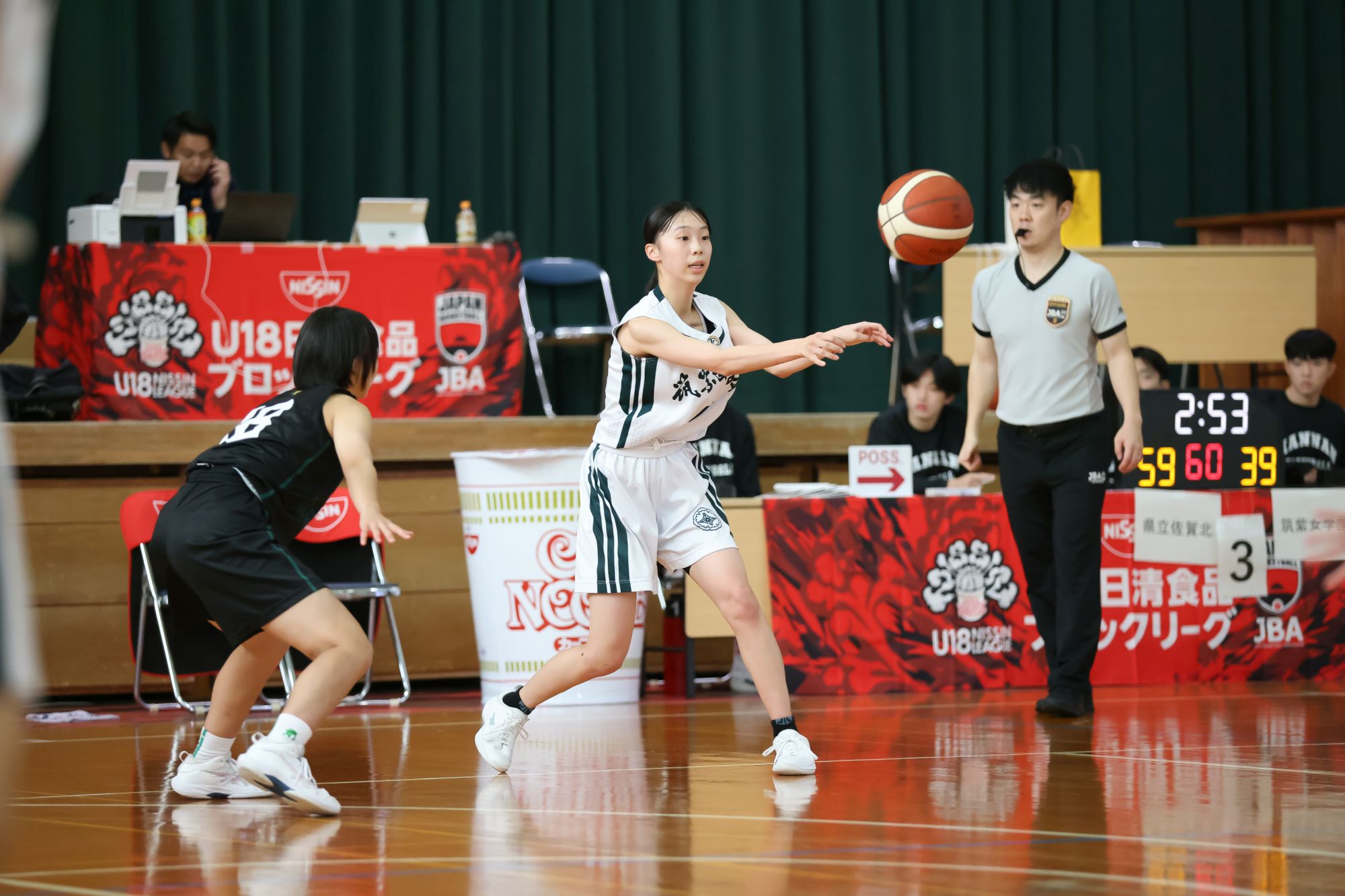 他のチームメートも、求められる役割が大きくなって四苦八苦しながら、攻守に懸命なプレーで県立佐賀北に食らい付きます。それでも県立佐賀北が要所でオールコートプレスを仕掛けると、その緩急に対応できずにターンオーバーを連発。そこから走られて点差を広げられる時間帯が何度かあったのが響き、54-86で敗れました。