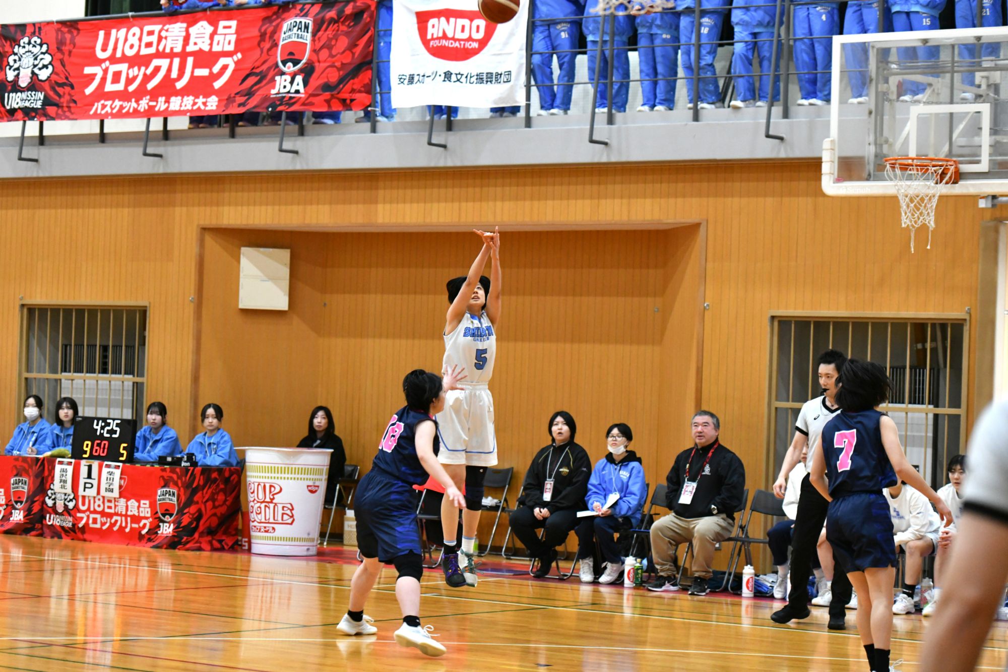 試合開始直後から激しいディフェンスで相手のターンオーバーを誘い、ガードの石塚夏実選手や1年生の古坂楓選手が素早い攻めから得点を重ねるスタートダッシュを決めました。波多野選手もインサイドにポジショニングしながらタイミング良くアウトサイドに飛び出してボールを受け、ペイントアタックで相手のファウルを誘ったり、ブロックショットを成功させたりと好調でした。