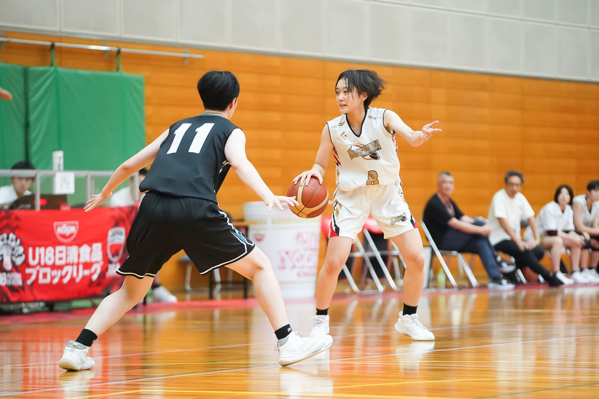 下級生の4人が「U18日清食品ブロックリーグ」でそれぞれ成長したところを見せる中、キャプテンの前川選手はハンドラーを担い、3ポイントシュートやドライブから連続得点を挙げるなどチームを牽引しますが、県立岐阜商業のオールコートのディフェンス、また3ポイントシュート攻勢に苦し、劣勢を跳ね返すには至りませんでした。