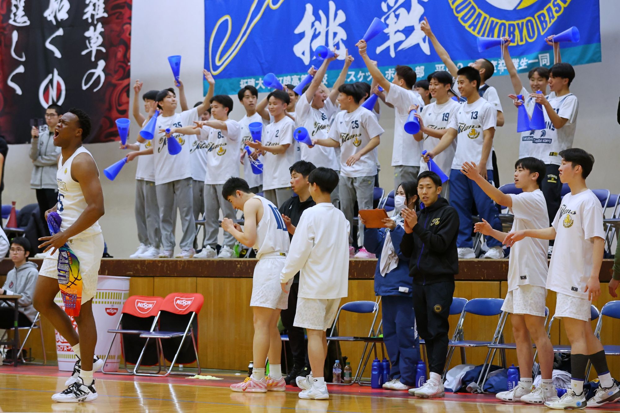 しかし、第2クォーターからはマンツーマンディフェンスに戻すことで、徐々にリズムをつかみます。ディフェンスの当たりを厳しくして習志野市立習志野の3ポイントシュートを塞ぐと、オフェンスでも留学生のアブサ イベフ ラリッド選手とイタマ マイケル オゲネオヴォ選手が交互に出場してゴール下を支配しつつ、日本人選手がアウトサイドやドライブで得点を重ねていきます。そして、第2クォーター残り0.6秒でシュートを沈めた勢いのまま後半に挑み、逆転に成功。その後は一進一退の攻防が続きましたが、残り2分で奪ったリードを守り、最終スコア91-86で勝利しました。
